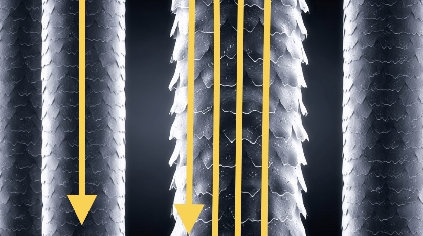 それは、トリートメントの成分が髪の表面に縦方向に吸着※3するためです。