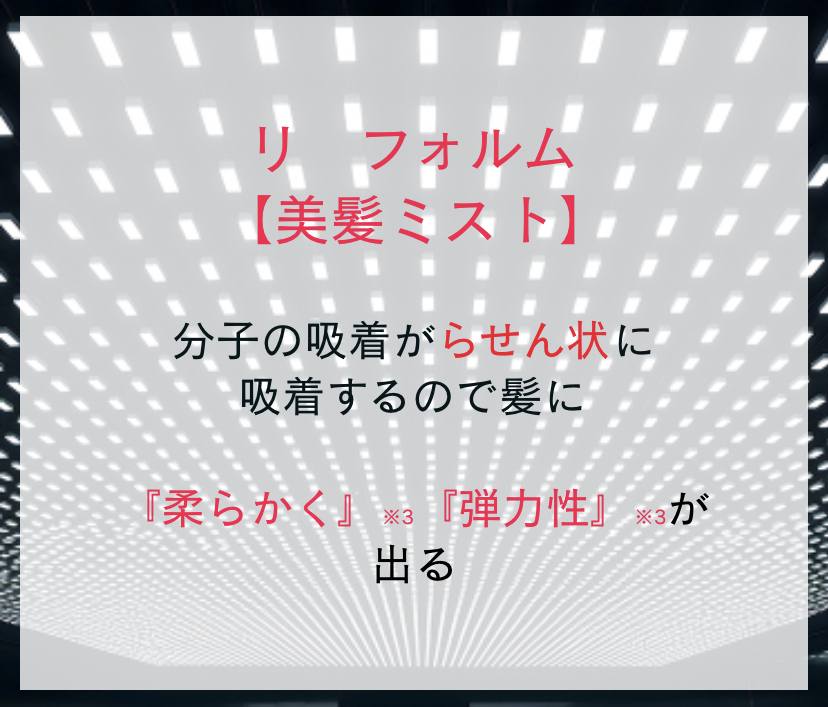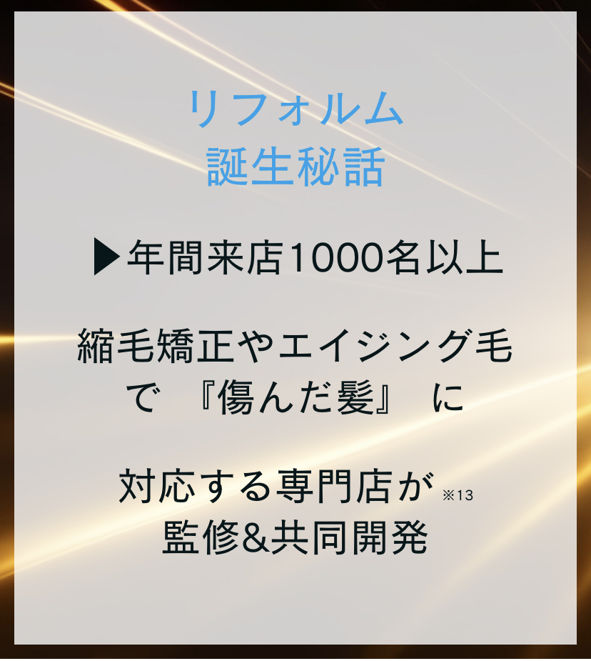 具体的には、リフォルムは、髪の内部まで浸透する「浸透型」※13トリートメントです。