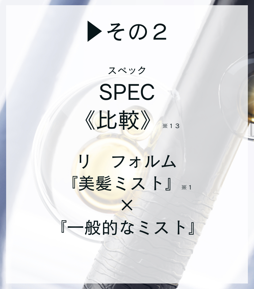 1ブロックあたり4~5プッシュ分のリ:フォルムを中間から毛先のダメージが気になる部分に噴霧します。