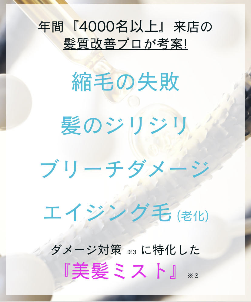 自宅でも手軽に美しい髪を保つために、私たちは自宅用髪質改善ミストを開発しました。